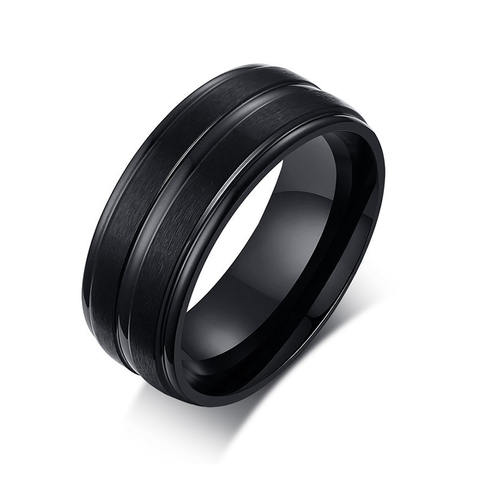 خواتم مجوهرات تقليدية كلاسيكية للرجال مطلية باللون الأسود من الفولاذ المقاوم للصدأ 316L عالية الجودة بتصميم بسيط من التيتانيوم