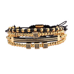 新しいデザイン高級マイクロパヴェCZチャームメンズジュエリーマクラメ調節可能なステンレススチールバングルブレスレットセット