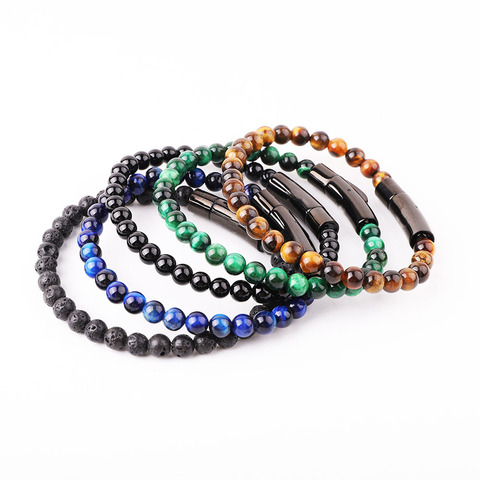สร้อยข้อมือหินธรรมชาติ2x4มม. สำหรับผู้ชายผู้หญิงสร้อยข้อมือลูกปัดสแตนเลสแบบยืดหยุ่น