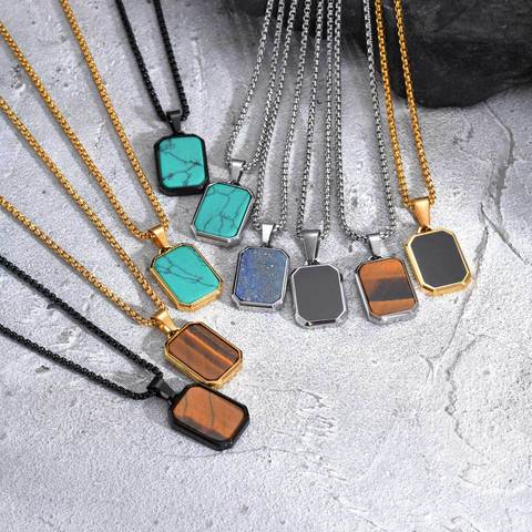 สร้อยคอจี้หินธรรมชาติทรงสี่เหลี่ยมทำจากไทเทเนียมดีไซน์เรียบง่ายไม่เหมือนใคร PN-1828ใหม่